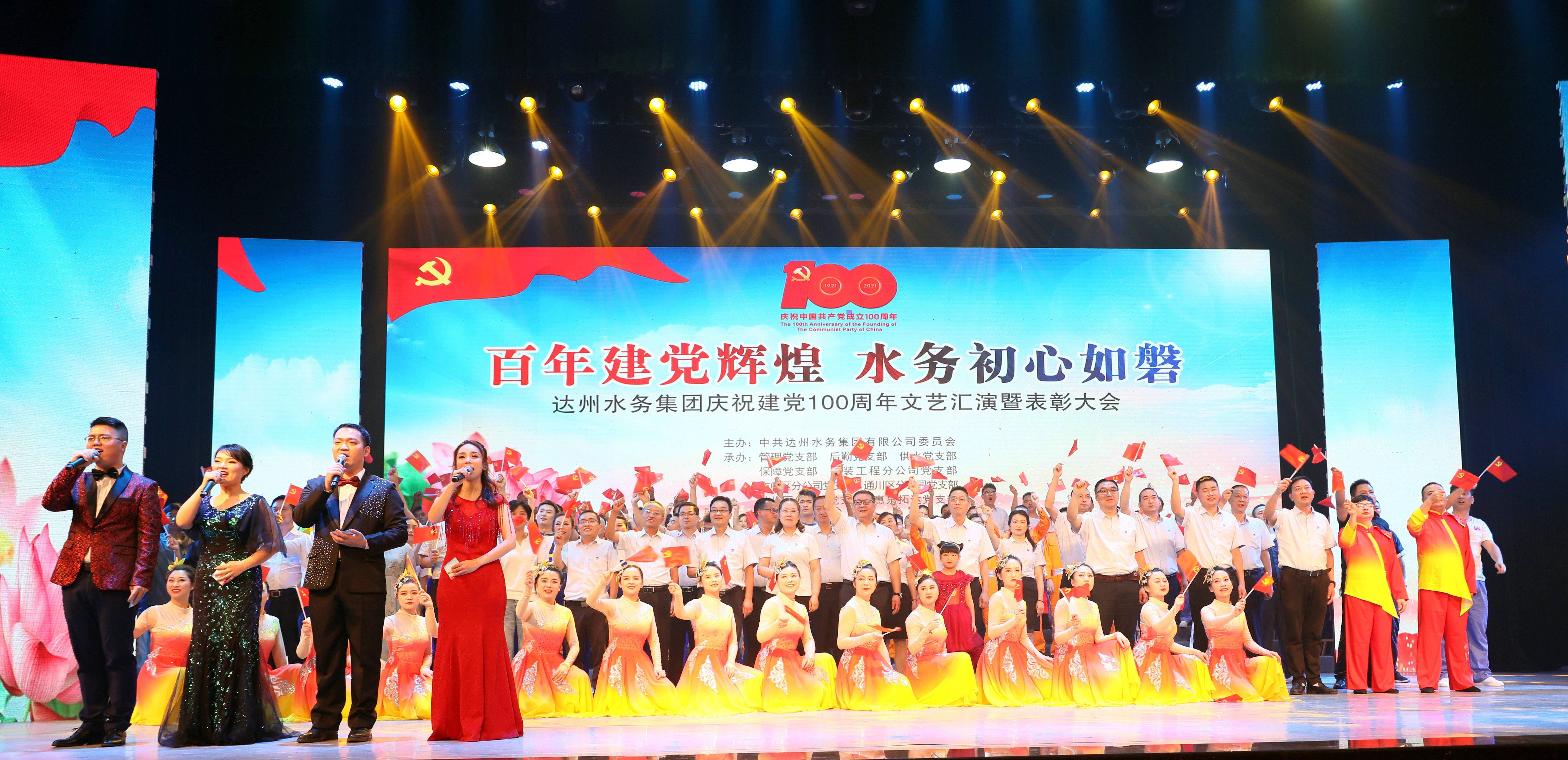 舉辦一次文藝匯演。為慶祝中國共產黨成立100周年,唱響新時代主旋律,達州水務集團6月18日晚上在中心廣場隆重舉辦“百年建黨輝煌 水務初心如磐”文藝匯演,全體干部職工群眾共慶黨的百年華誕,嘹亮的歌聲響徹上空,臺上臺下紅旗舞動,現場化成一片紅色的海洋,處處傳遞著人民對黨、對祖國的美好祝愿。